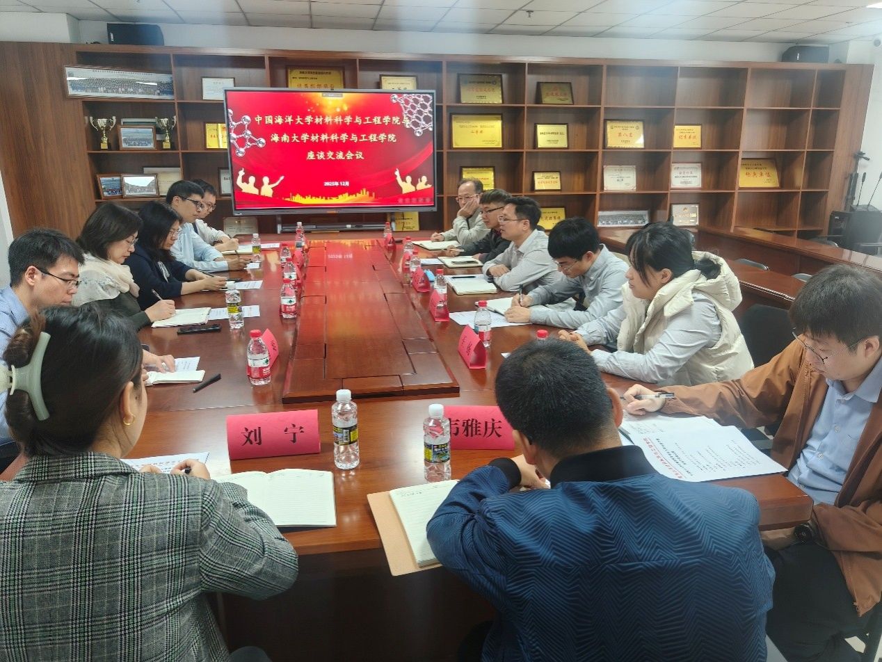 2025年12月5日,SWAG直播 在研发楼210会议室举办与中国海洋大学SWAG直播 的交流座谈会。会议由学院邓意达院长主持,胡先文书记、学院领导和教师代表参加,中国海洋大学材料学院党委书记杜军华、院长崔洪芝和教师代表参加。