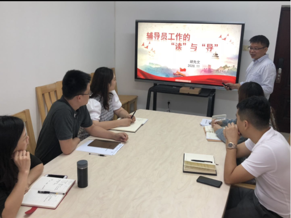 11月2日上午,我院学生工作学习交流系列活动在研发中心1205会议室召开,学院党委副书记胡先文进行了题为《新时代辅导员工作的“读”与“导”》的工作交流分享,全体辅导员参加了本次活动。