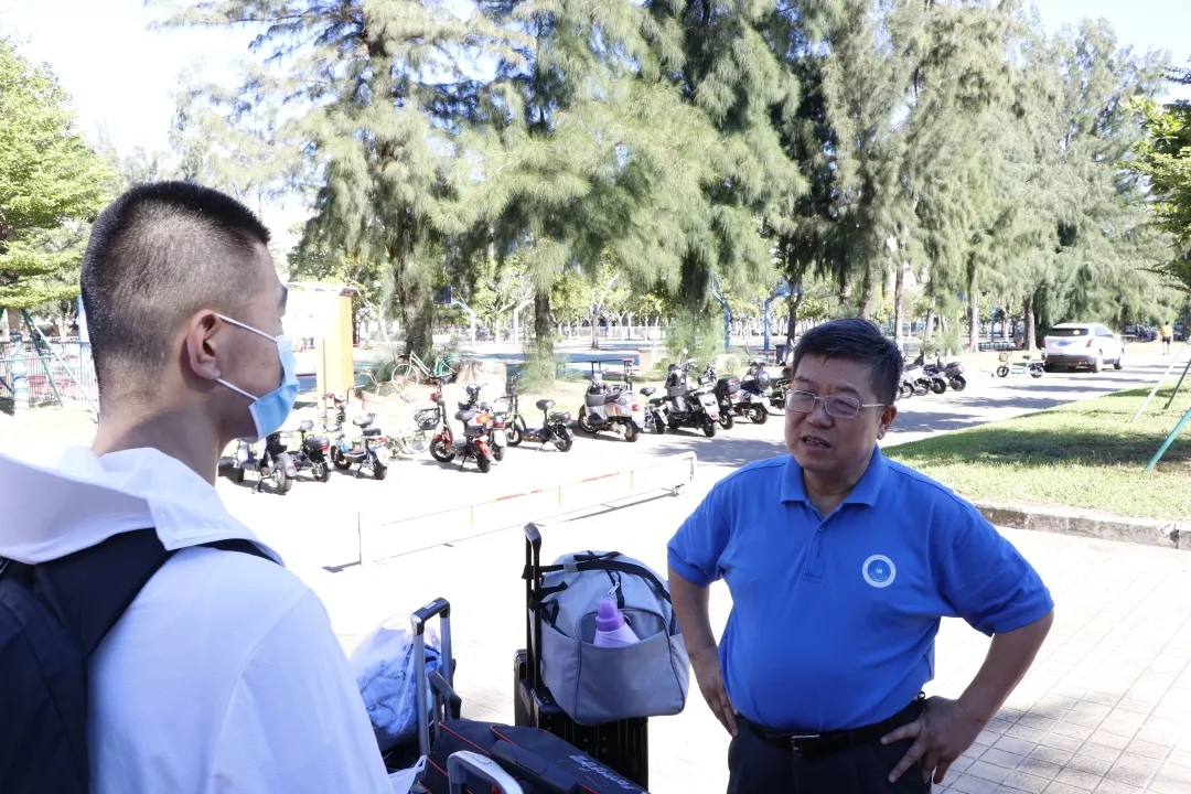 迎新现场,学院领导仔细询问了同学们在新环境下的感受,尤其对外地来海南求学的同学表示关切之情,询问他们对气候的适应情况,同他们拉家常。师生之间其乐融融,亲切般的关怀和温馨,沁入每位同学心中。