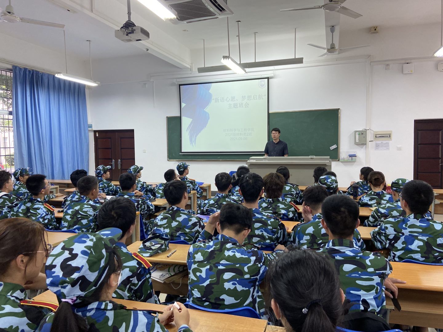 各班班会上,班主任为新生分享自身经验,鼓励新生积极参与各类科研、学术、文体活动中去,成就不一样的精彩大学生活。