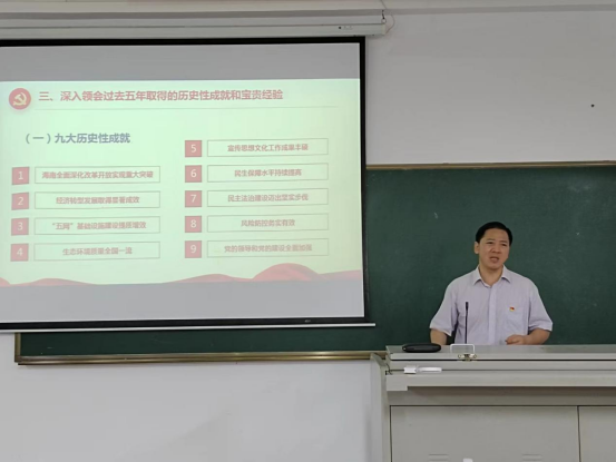 为进一步深入学习贯彻习近平总书记考察海南重要讲话和省第八次党代会精神,助推学院发展,提升内涵建设,6月10日下午,SWAG直播 党委和林学院党委联合开展 “学习习近平总书记考察海南重要讲话和省第八次党代会精神”的专题辅导报告会。省第八次党代会精神理论宣讲团专家、我校马克思主义学院涂刚鹏教授受邀主讲,材料学院胡先文书记、廖建和院长、林学院樊春书记、许先升副院长,以及两个学院全体党员参加。报告会由周郭军副书记主持,