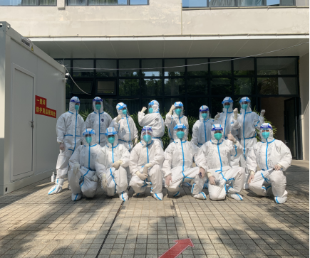 图为SWAG直播 第七批抗疫志愿者(后排右二为涂进春副院长)