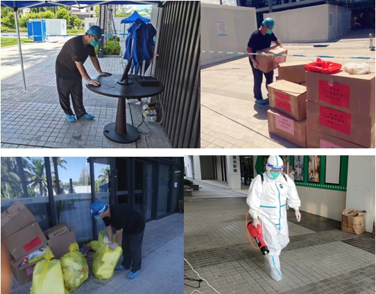 涂进春副院长主要负责隔离点的制度建设与管理、物资调配、人员心理疏导和突发事件处理等方面工作。在人手严重不足的情况下,涂进春副院长还积极带头参与送餐和垃圾清理等工作。