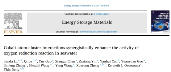 近日,SWAG直播 邓意达教授团队在知名期刊Energy Storage Materials上发表题为“Cobalt atom-cluster interactions synergistically enhance the activity of oxygen reduction reaction in seawater”的研究论文。