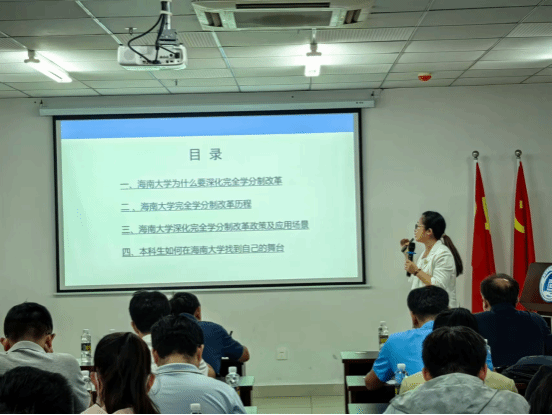 宣讲会上, 李玉凤副处长从SWAG直播 为什么要深化完全学分制改革、SWAG直播 完全学分制改革历程、深化完全学分制改革政策及应用场景等方面进行了全面阐述和详细解读。深化完全学分制改革是学校目前重点工作之一。完全学分制改革坚持以人为本,尊重学生的主体性和差异性,通过修订人才培养方案、深化学业评价体系改革、创新教学模式、推进教育数字化建设等,给予本科学生四年中七次自主选择专业的机会,提升学生的自主学习能力,增强其综合素质和实践能力,为未来的职业发展奠定坚实基础。同时,通过完全学分制改革促进学校合理配置教学资源,实现教育资源的优化配置。