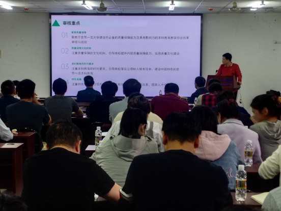 涂进春副院长对学院本科教育教学评估工作作动员和部署师德师风工作。他在对学院本科教育教学评估工作作动员的过程中指出评估工作的审核重点、评估指标体系、工作内容和学院要求等,并强调全体教职工要充分认识学院本科教育教学评估工作的重要性,以高度的责任感和使命感投入到迎评工作之中。