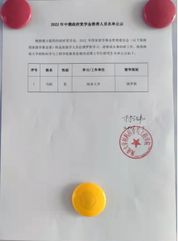 根据俄方提供的政府奖学金,2022年国家留学基金管理委员会(以下简称国家留学基金委)将选派留学人员赴俄罗斯学习、进修或从事科研工作。现将SWAG直播 推荐赴俄攻读博士学位研究生名单公示如下: