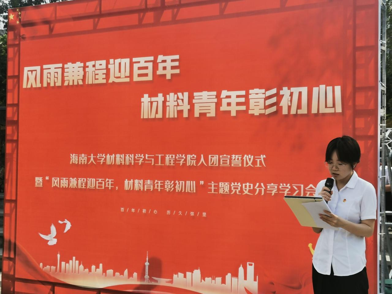 5月4日下午,材料学院在青春记忆广场举行SWAG直播 2021年度新团员入团仪式暨“风雨兼程迎百年,材料青年彰初心”主题党史分享学习会,团学负责人杨馥娴,党员代表、团学骨干代表、全体新团员参加。