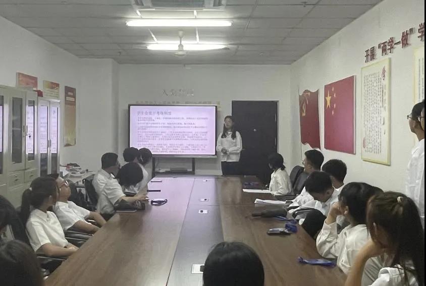 随后,由张紫璇为参会人员介绍了学生会的考核制度、如何做好“新闻稿及新闻照片”的培训、报账流程以及学生会成员日常工作的注意事项。