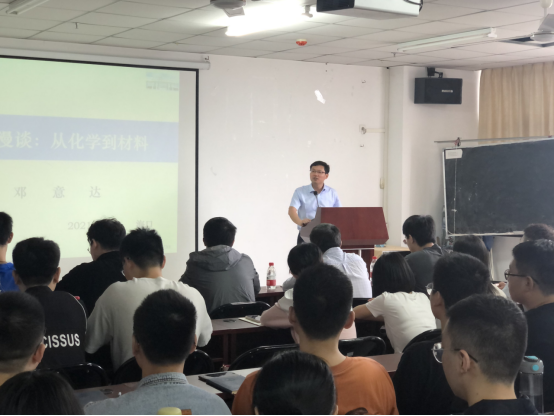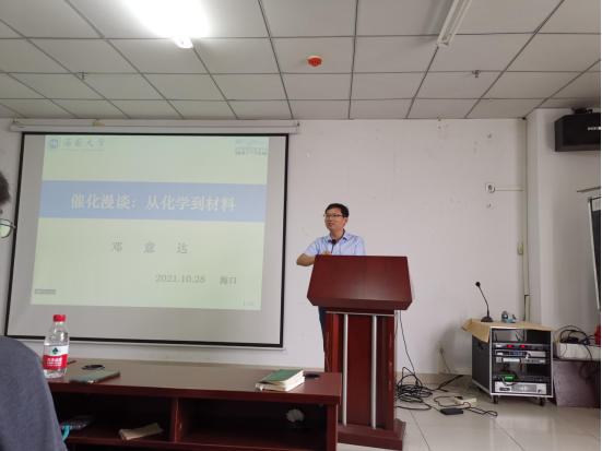 报告会上,邓意达教授首先讲述了自己的学习和研究经历,分享了他从本科学习化学,之后从事材料研究的心得体会,以及在此过程中对材料科学研究的理解,然后以催化材料为例讲解了团队研究的最新成果:如何通过能带工程和缺陷工程来调控材料的催化活性。报告深入浅出,发人深省,增强了同学们立足材料、服务海南、建设海南的动力和信念。