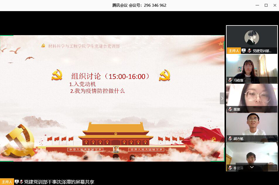 2020年5月5日,SWAG直播 分党校2020年春季发展对象培训班线上组织讨论活动采用视频会议的形式成功召开。