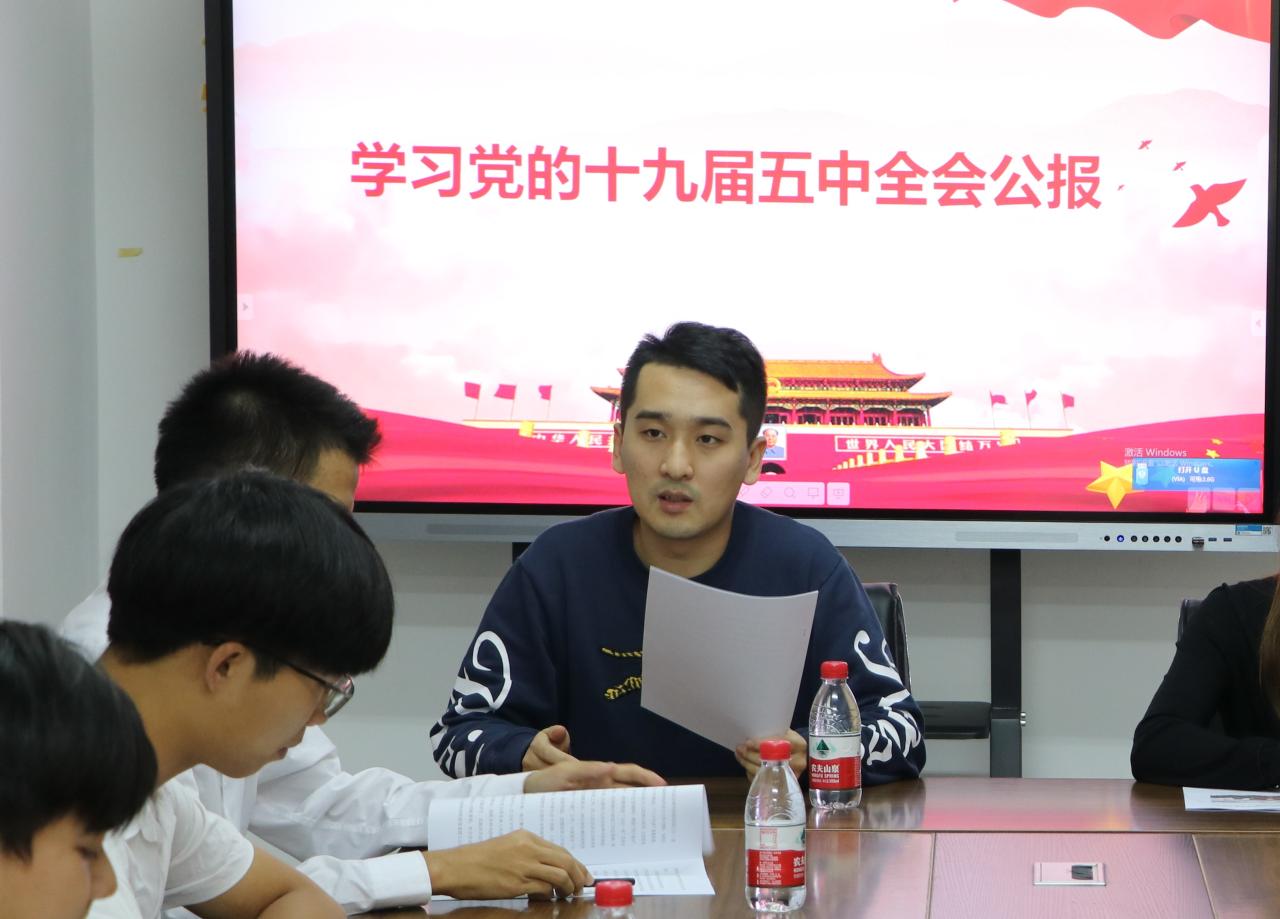会议伊始,团委书记王曦带领学生组织成员阅读学习十九届五中全会公报。他指出,党的十九届五中全会是在我国将进入新发展阶段、实现中华民族伟大复兴正处在关键时期召开的一次具有全局性、历史性意义的重要会议。他强调,我院师生群体要精准落实全会精神,学生干部要起好带头作用,做好宣传学习工作,按照中央以及教育部有关文件精神,迅速在全院范围内,通过组织开展学生干部内部学习会议,全体学生团支部书记交流会议,以班级为单位的班级学习会议等全面系统地学习传达全会精神,同时在学生党员培训活动中安排专题学习,做到全面系统学、联系实际学,用心学进去、用情讲出来、用力做起来。